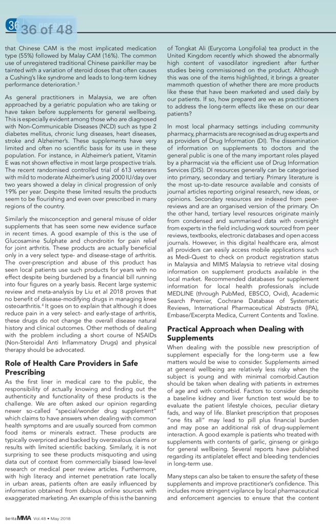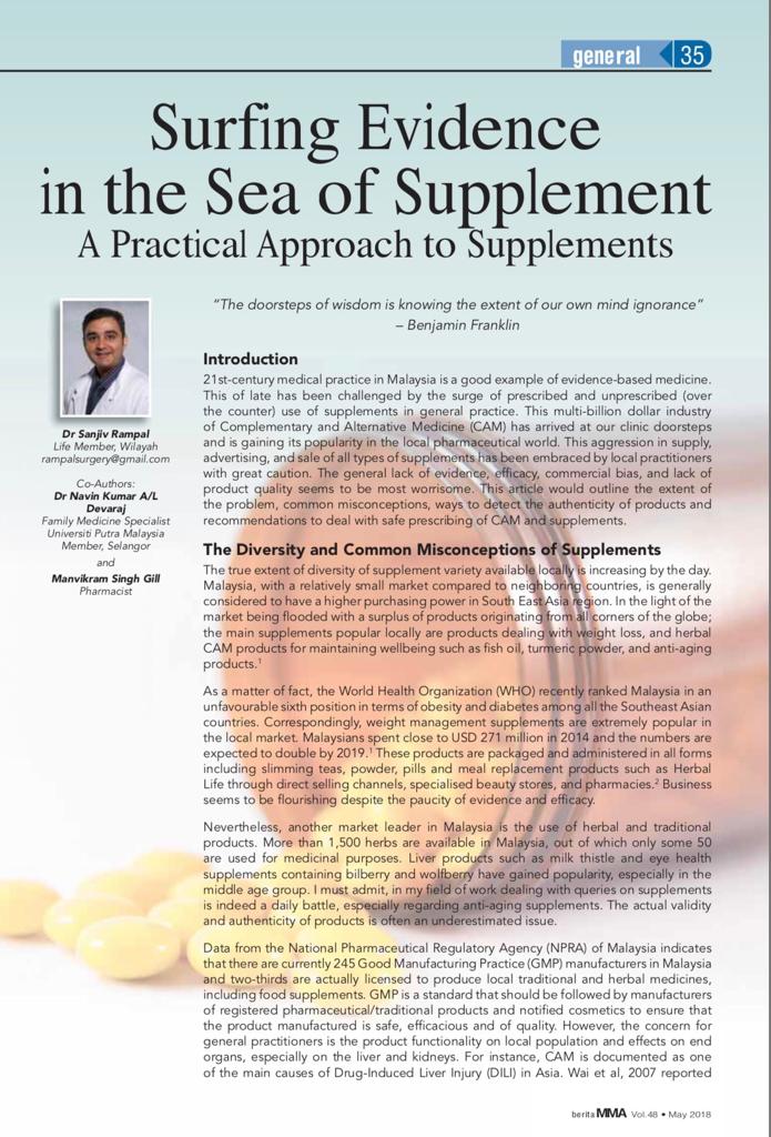 Dr Rampal’s article on the evidence on supplements in the treatment of osteoarthritis.This article outlines the evidence in clinical practice and some of academic value.