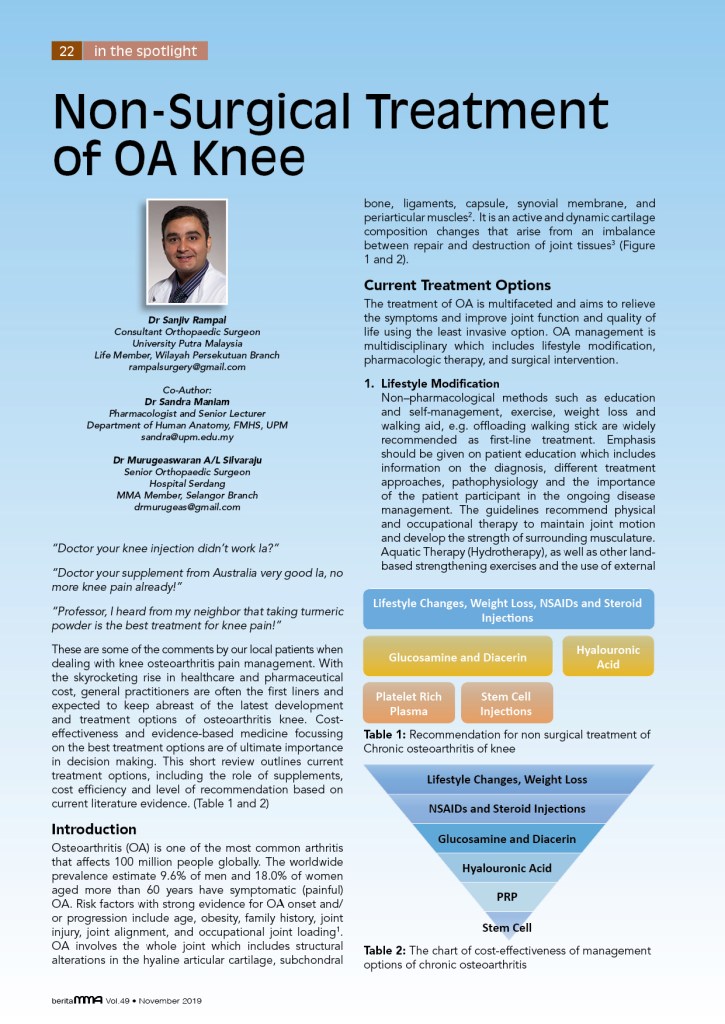 Its describes the cost effectivity and the current evidence update on different non surgical interventions used locally in treatment of Knee osteoarthritis in Malaysia.
