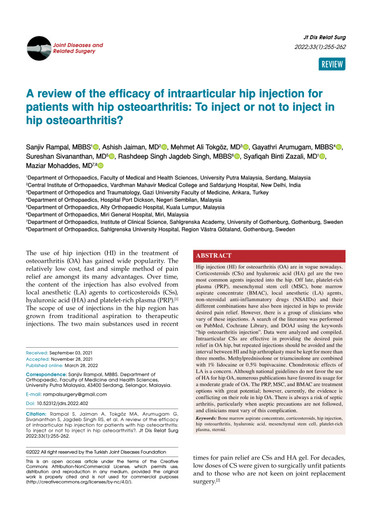 hip osteoarthritis is the second most common joint to be affected by arthritis. This disease comes at a significant cost to public health. The ability to review the available data and suggest the recommended treatment would depend on individual cases.