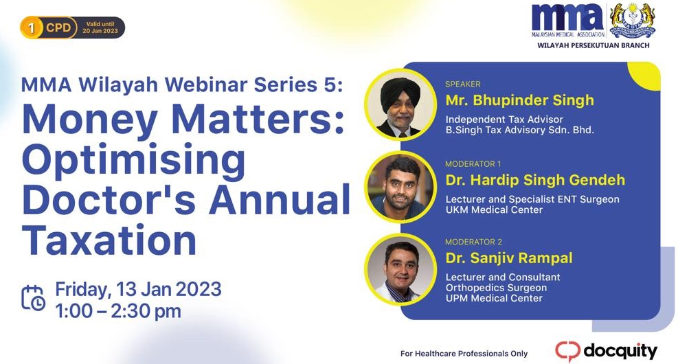 Malaysia Medical Association is hosting a web seminar exclusively for Malaysia Medical doctors on tax optimization and keeping our doctors in the know about income tax information.
