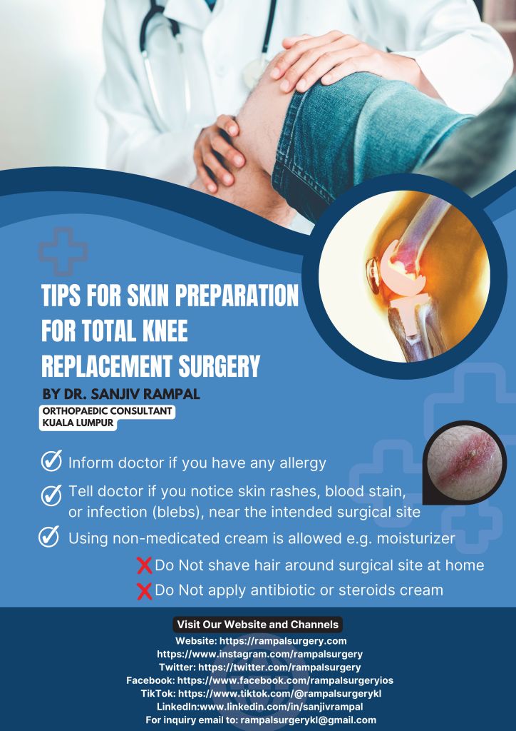 Tip Penjagaan Kulit Untuk Persediaan Pembedahan Penggantian Lutut Keseluruhan (Implan Lutut) oleh Dr. Sanjiv Rampal, Pakar Tulang/Ortopedik, Kuala Lumpur