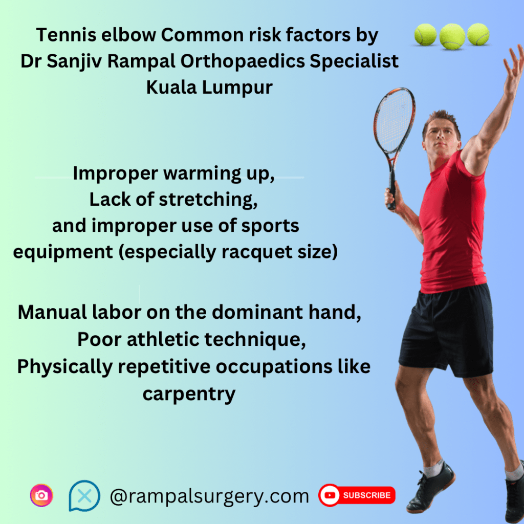 Tennis elbow is the most common pain associated with elbow .The disease usually affects the outer part of the joint and often can be treated non surgically.The common risk factors associated with tennis elbow would include