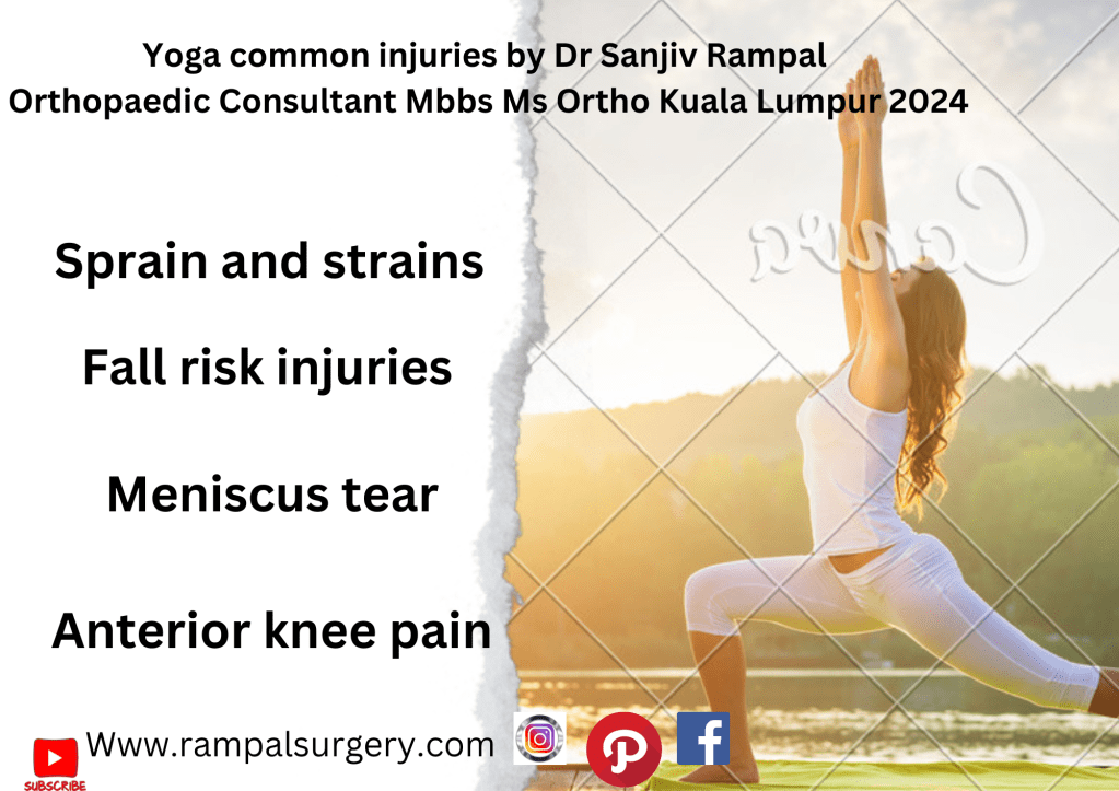 Yoga is a popular exercise that has been gaining popularity lately. While injuries are relatively less common, they can still occur and be mild in nature. According to Dr. Sanjiv Rampal, an Orthopaedic Consultant in Kuala Lumpur, reported musculoskeletal injuries include sprains, strains, anterior knee pain, and meniscus injuries, with men being at a higher risk. Stay safe during your yoga practice by being aware of the potential risks and taking necessary precautions. #YogaSafety #InjuryPrevention